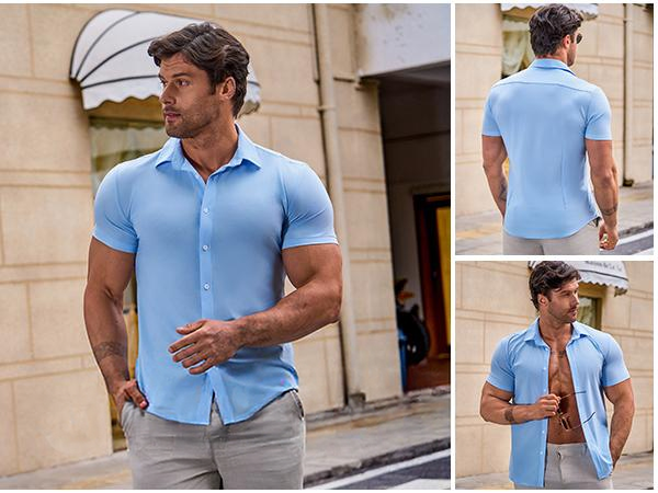 Soft Stretch Fabric: This men's muscle fit dress shirts comes in the perfect amount of stretch,