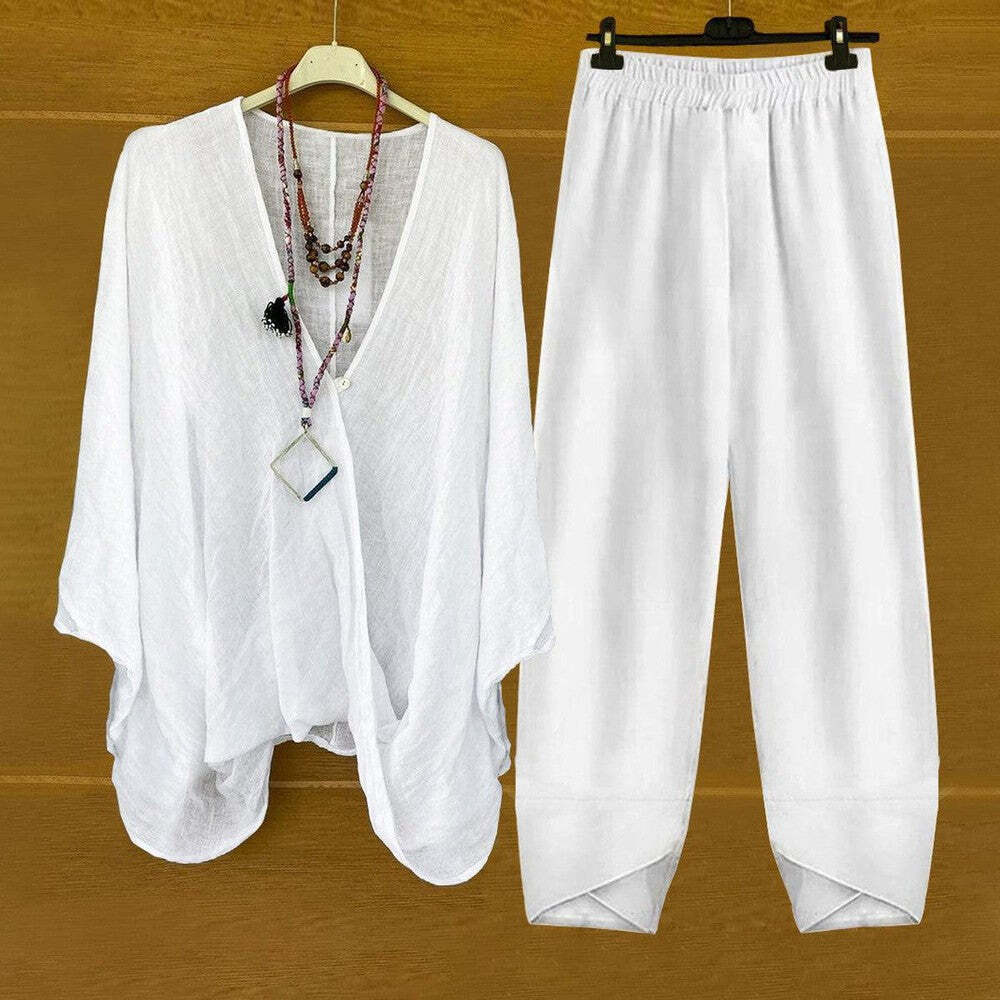 Basic White Plain Two Piece Set