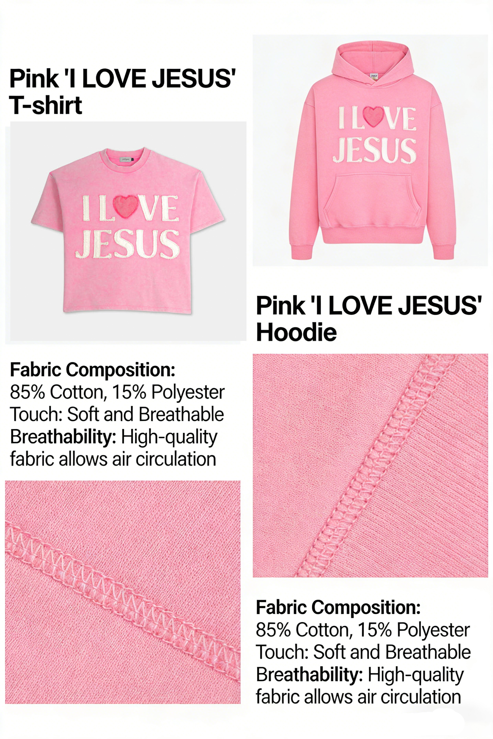 Harmonious Faith-Themed Styling: The matching graphic design on the T-shirt and hoodie creates a harmonious and unified look, making it the ideal choice for expressing your faith in your daily life.