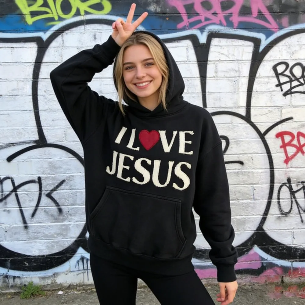 This "I Love Jesus" T-shirt and hoodie set blends warm sentiment with a retro style, adding a pop of color to your casual wardrobe. Designed to express your faith while prioritizing comfort and style, it perfectly combines meaningful design with everyday comfort.