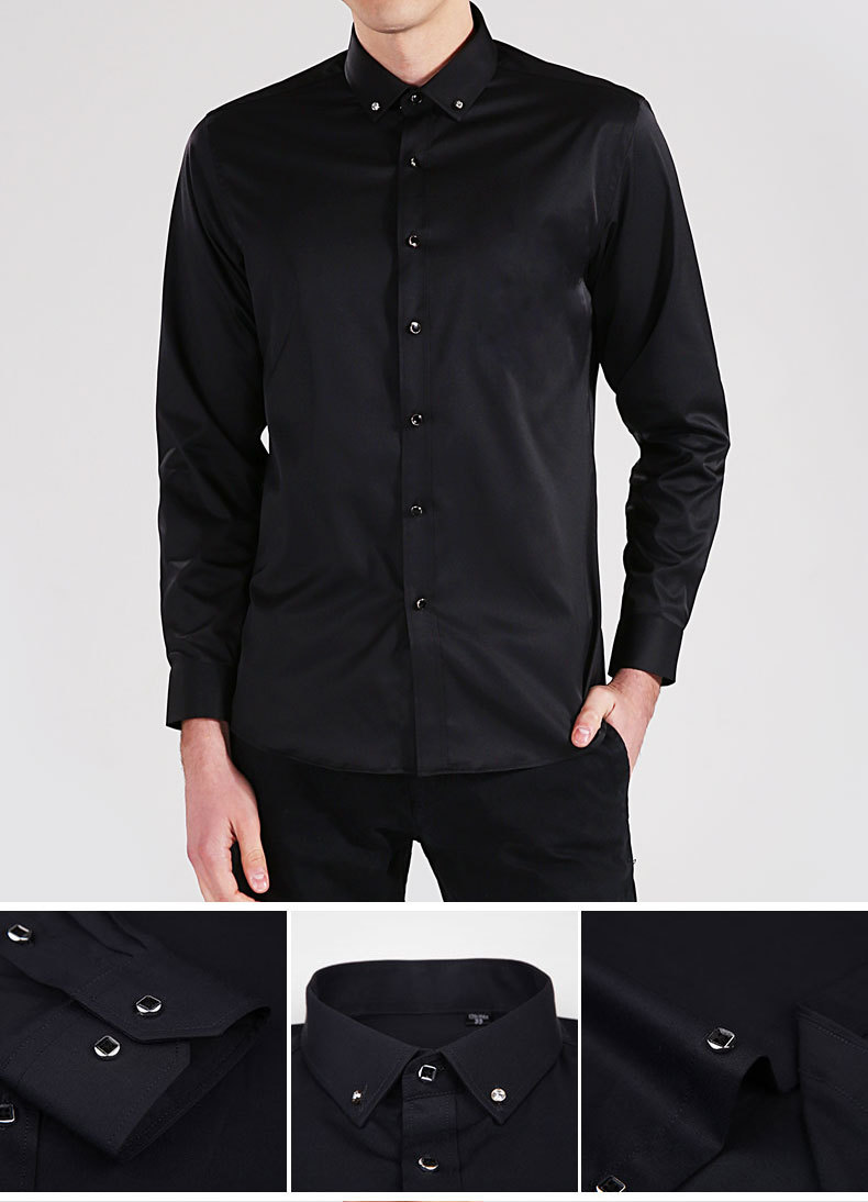 Men'S Long Sleeve Business Solid Color Cotton Breathable Shirt