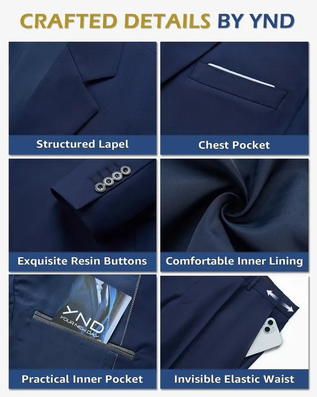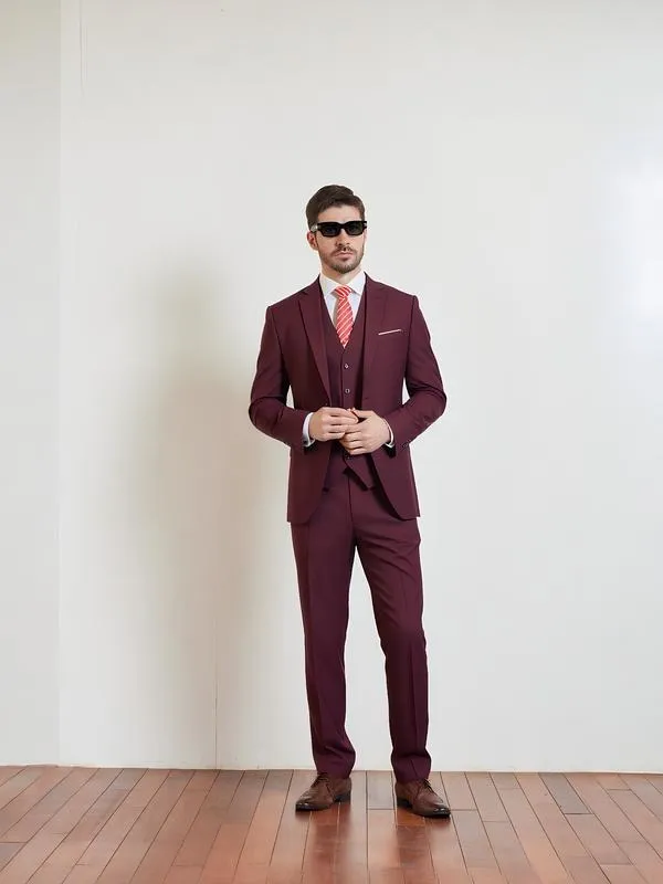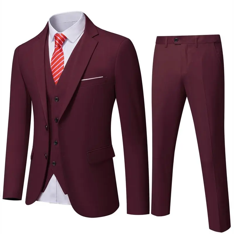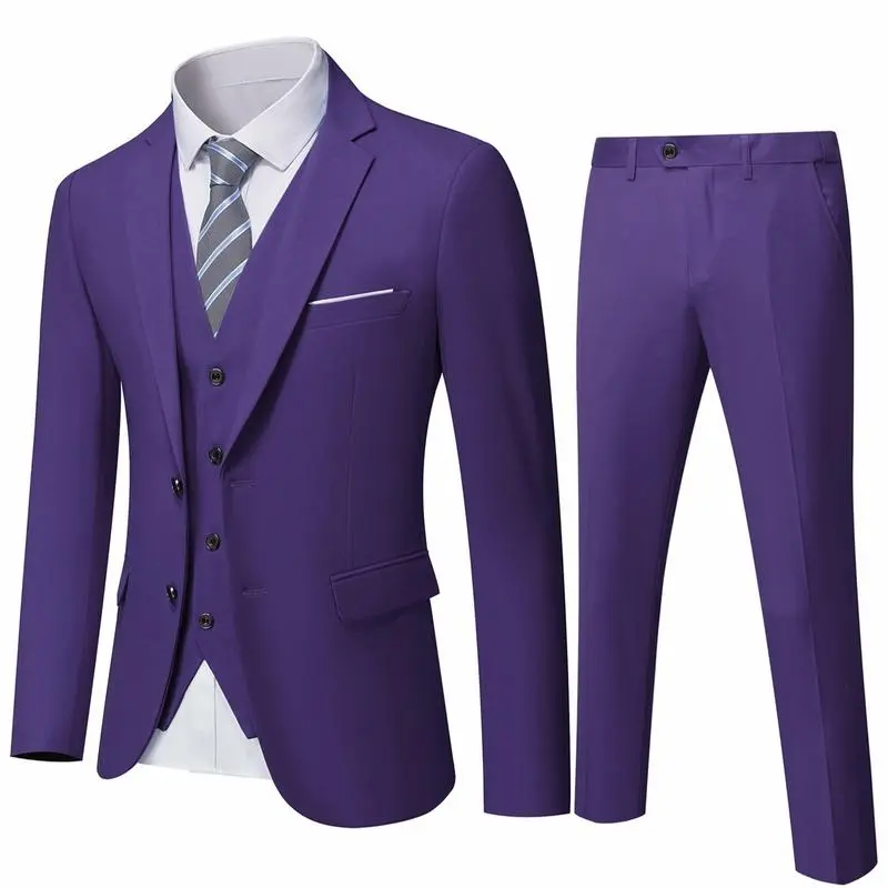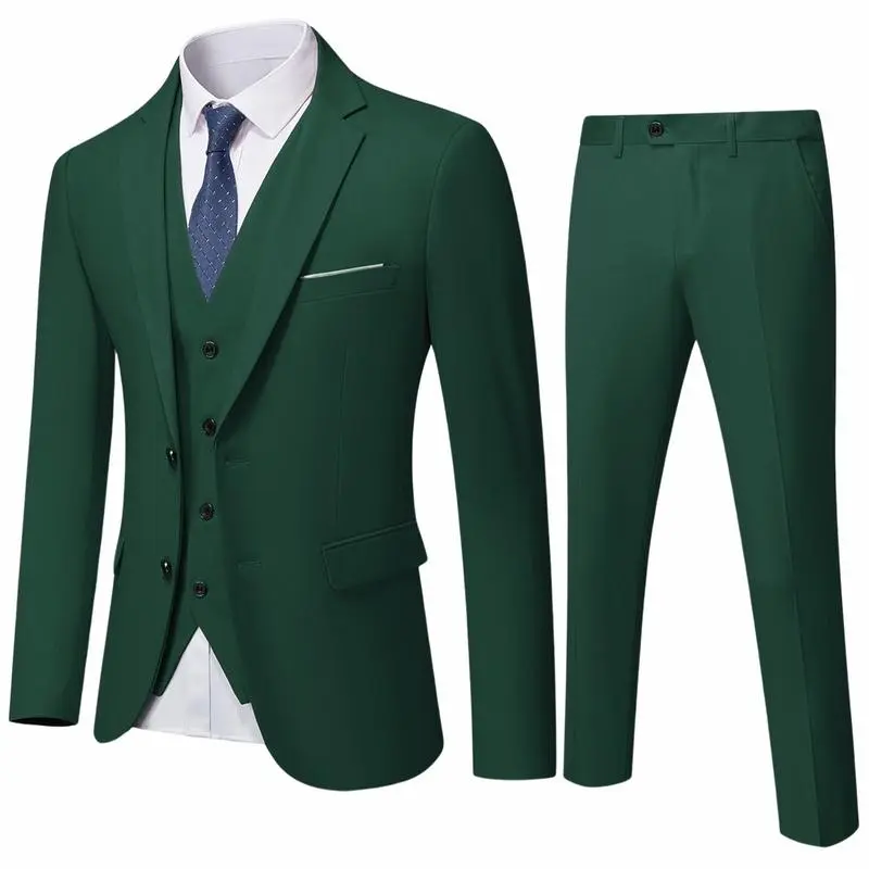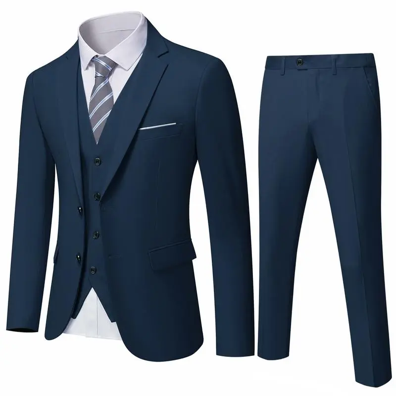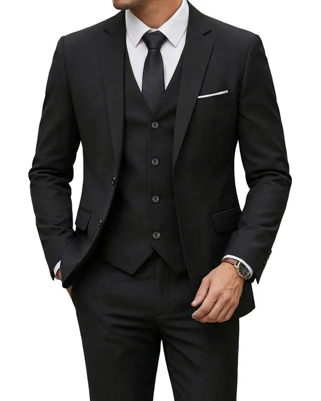 Men's Slim Fit 3-Piece Suit, 2-Button Jacket Pants Set, Random Tie, Formal Business Prom Casual Set
