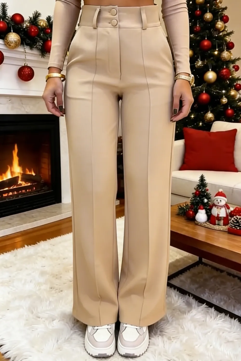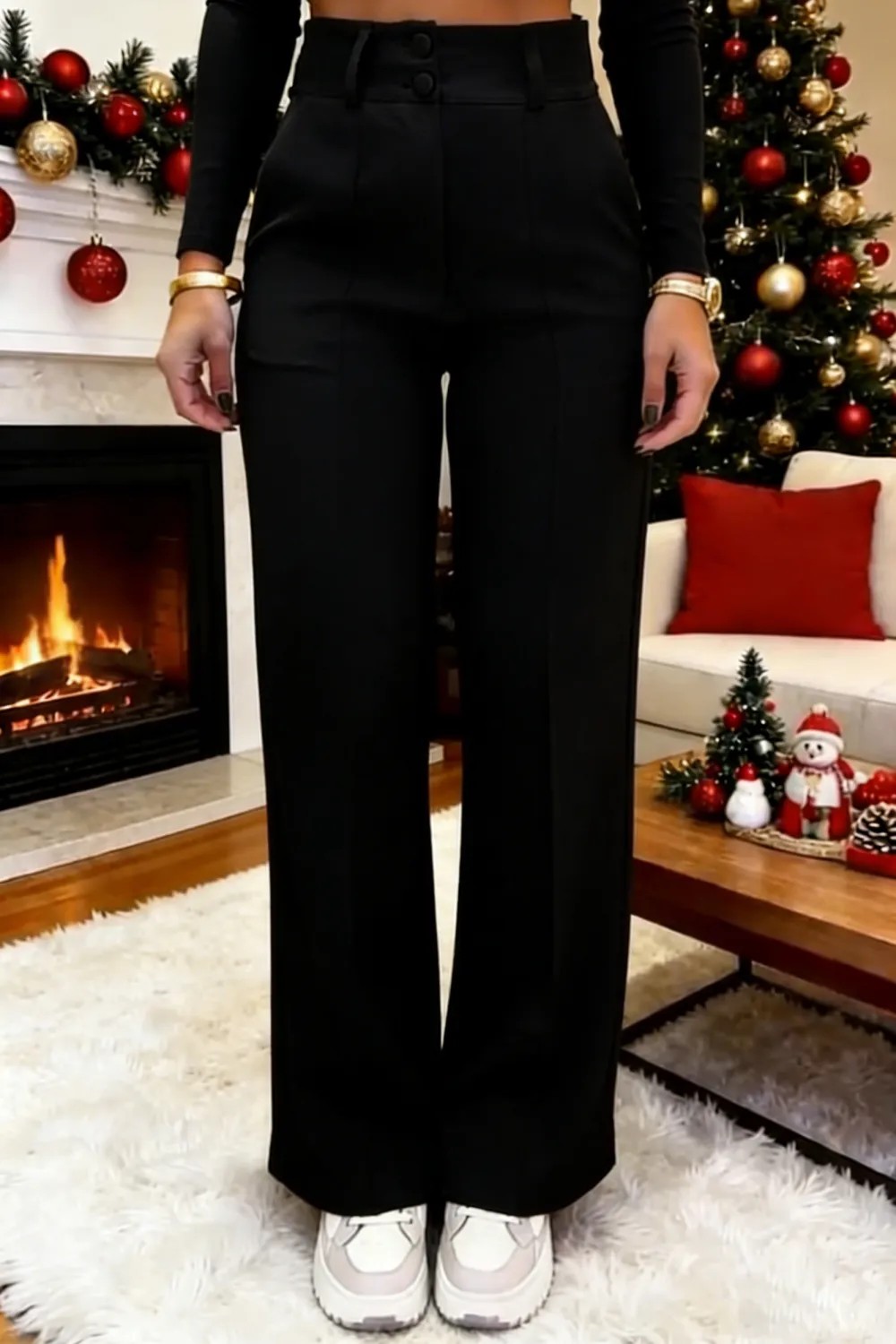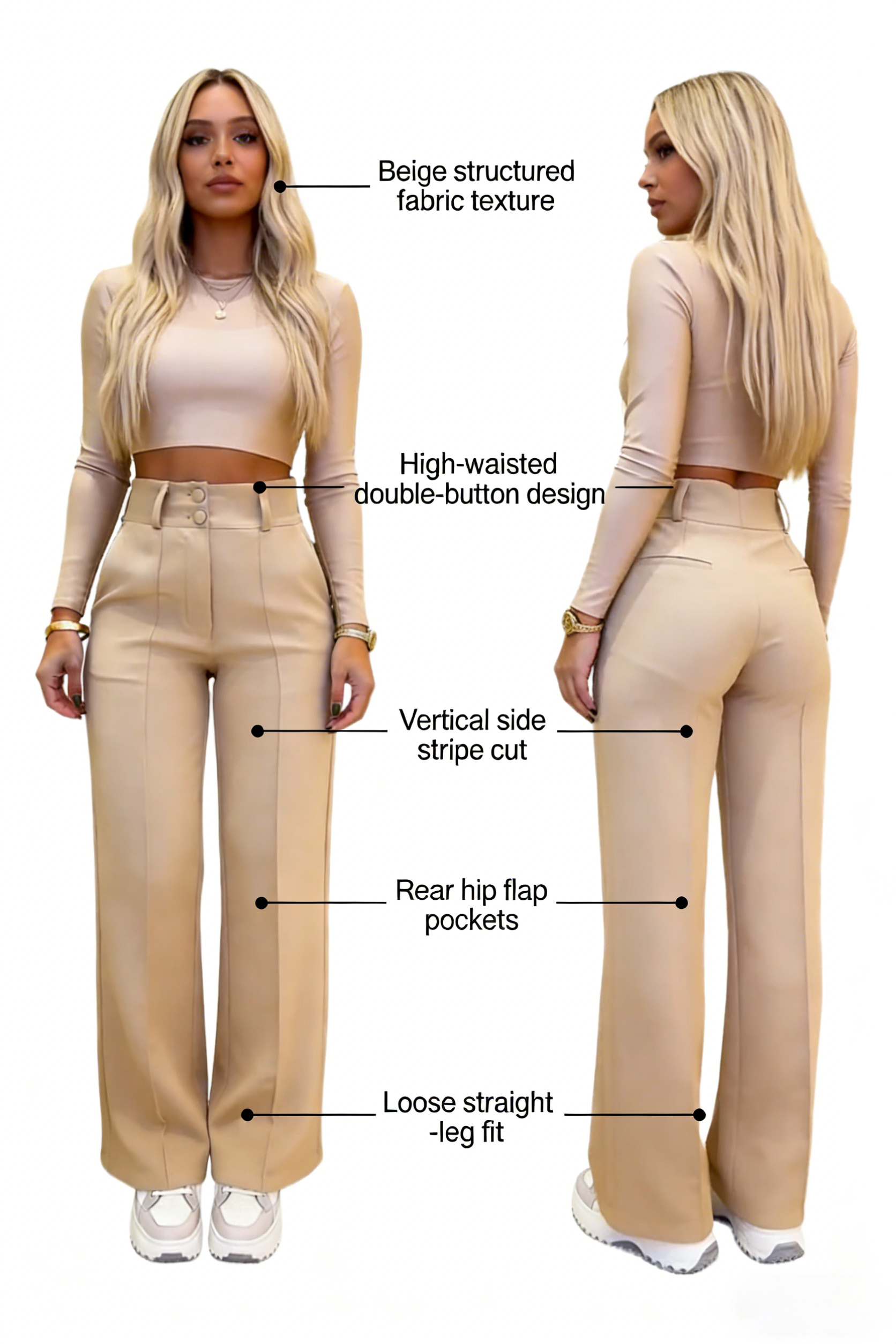 Slim Fit: The high-waisted design (double-button closure) paired with wide-leg trousers creates the illusion of longer legs, flattering all body types.