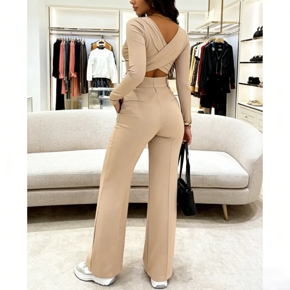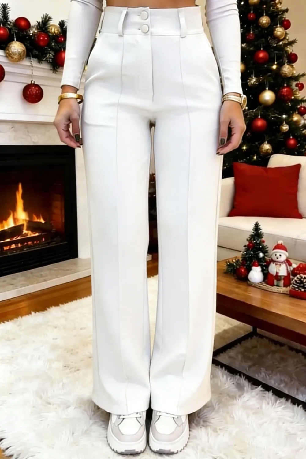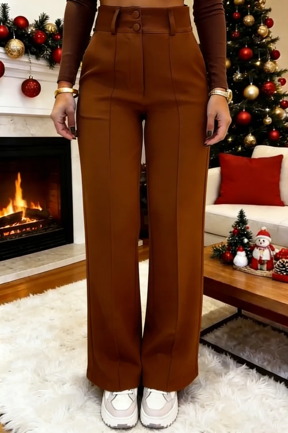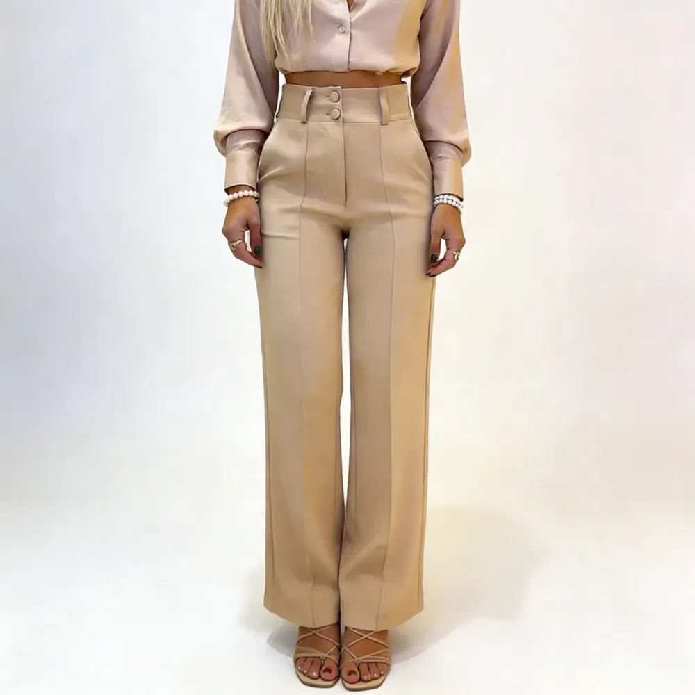 Slim Fit: The high-waisted design (double-button closure) paired with wide-leg trousers creates the illusion of longer legs, flattering all body types.