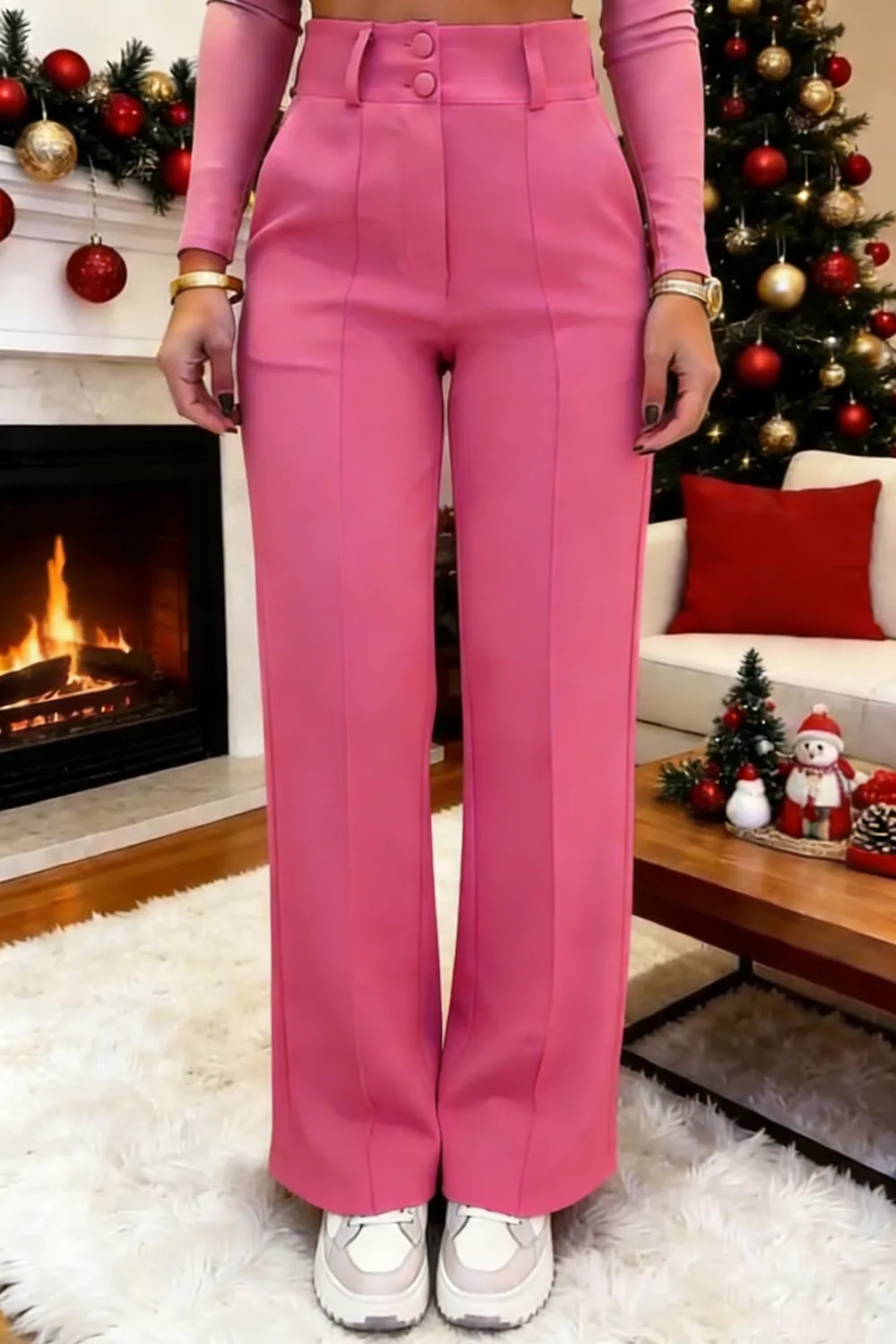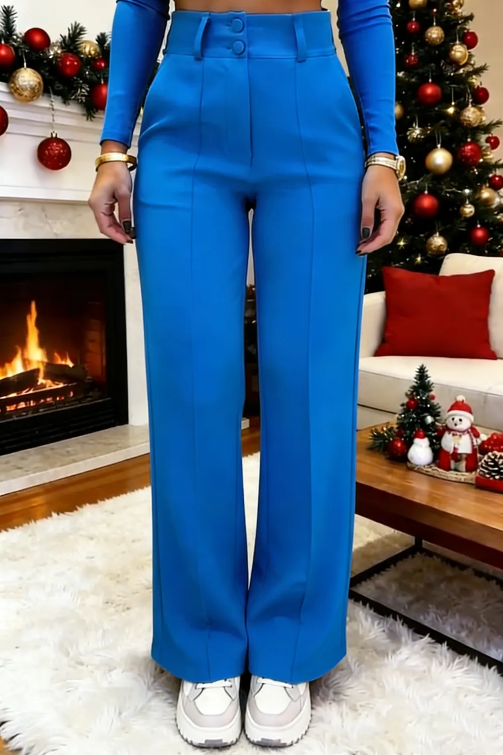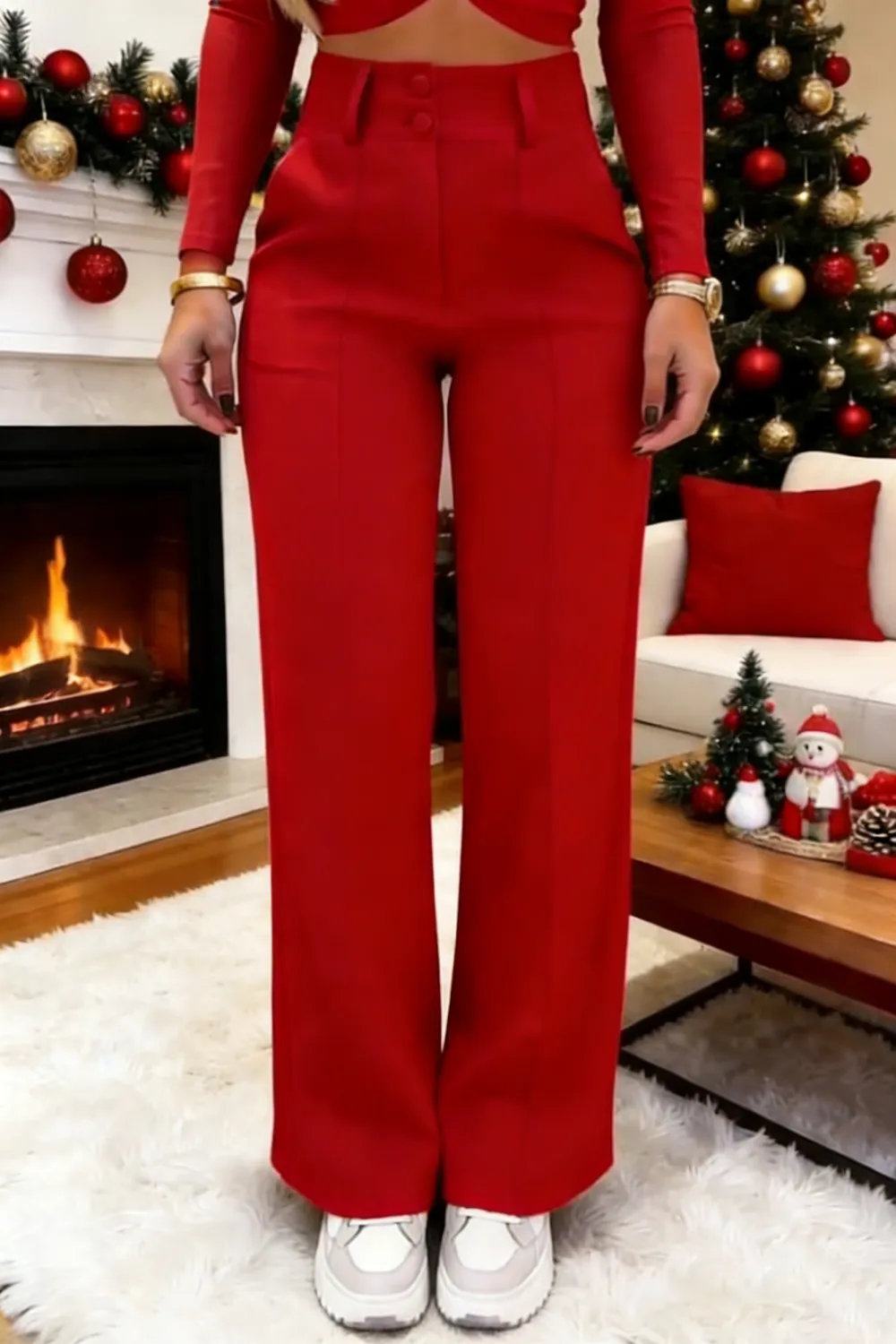 These high-waisted wide-leg trousers perfectly blend sophisticated style with effortless comfort, adding a pop of color to your wardrobe. Designed to enhance any look with elegance while maintaining a relaxed feel, they are an ideal choice for a flattering fit and everyday versatility.