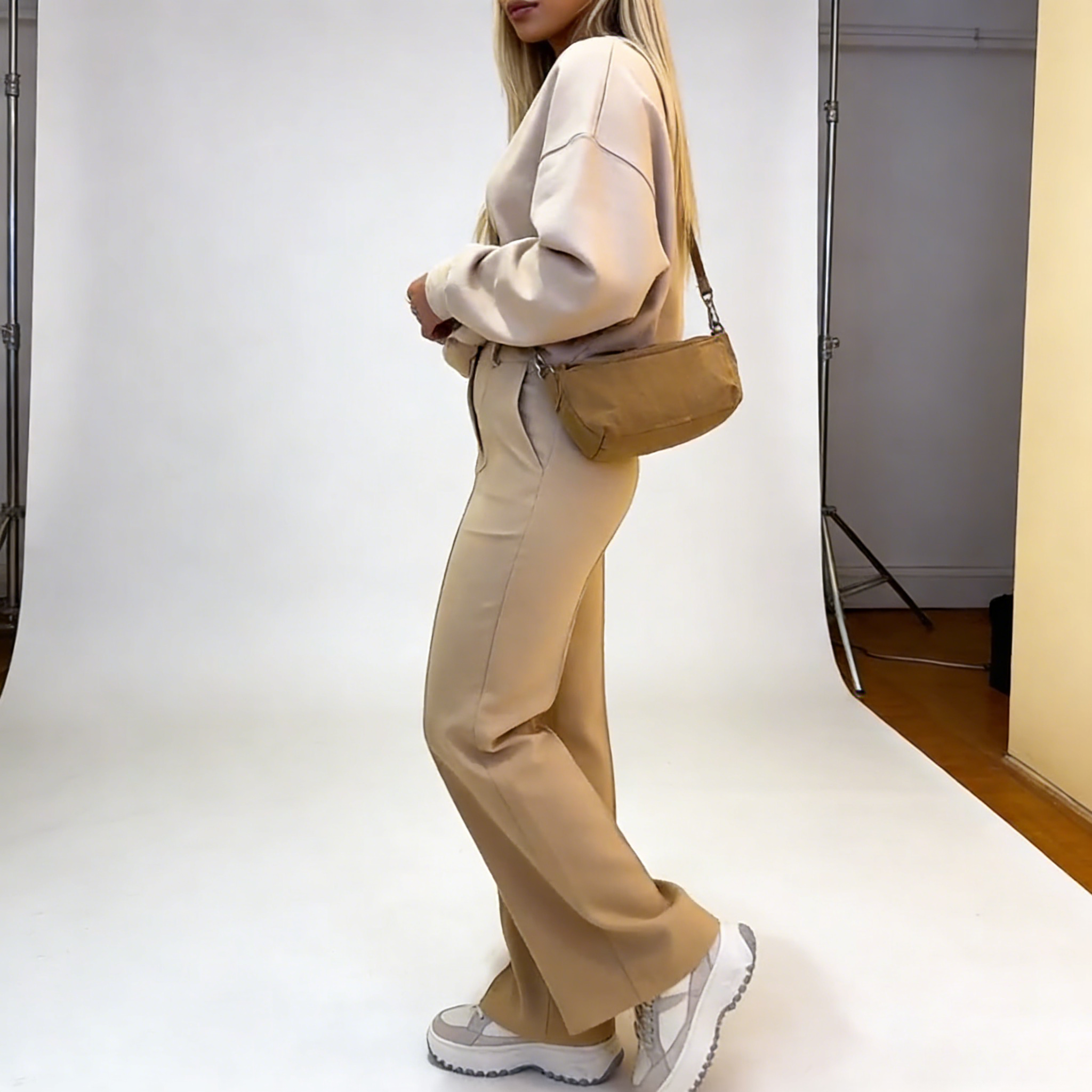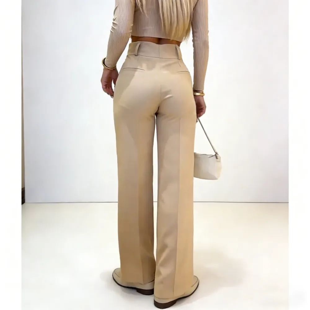 Whether you're dressed up for a brunch date, heading to the office, or creating a casual yet stylish look, these trousers are easy to match. Pair them with a cropped long-sleeved top (as shown in the picture) for a trendy look; or with a blazer for a sophisticated professional style—this versatile piece can elevate your overall look.