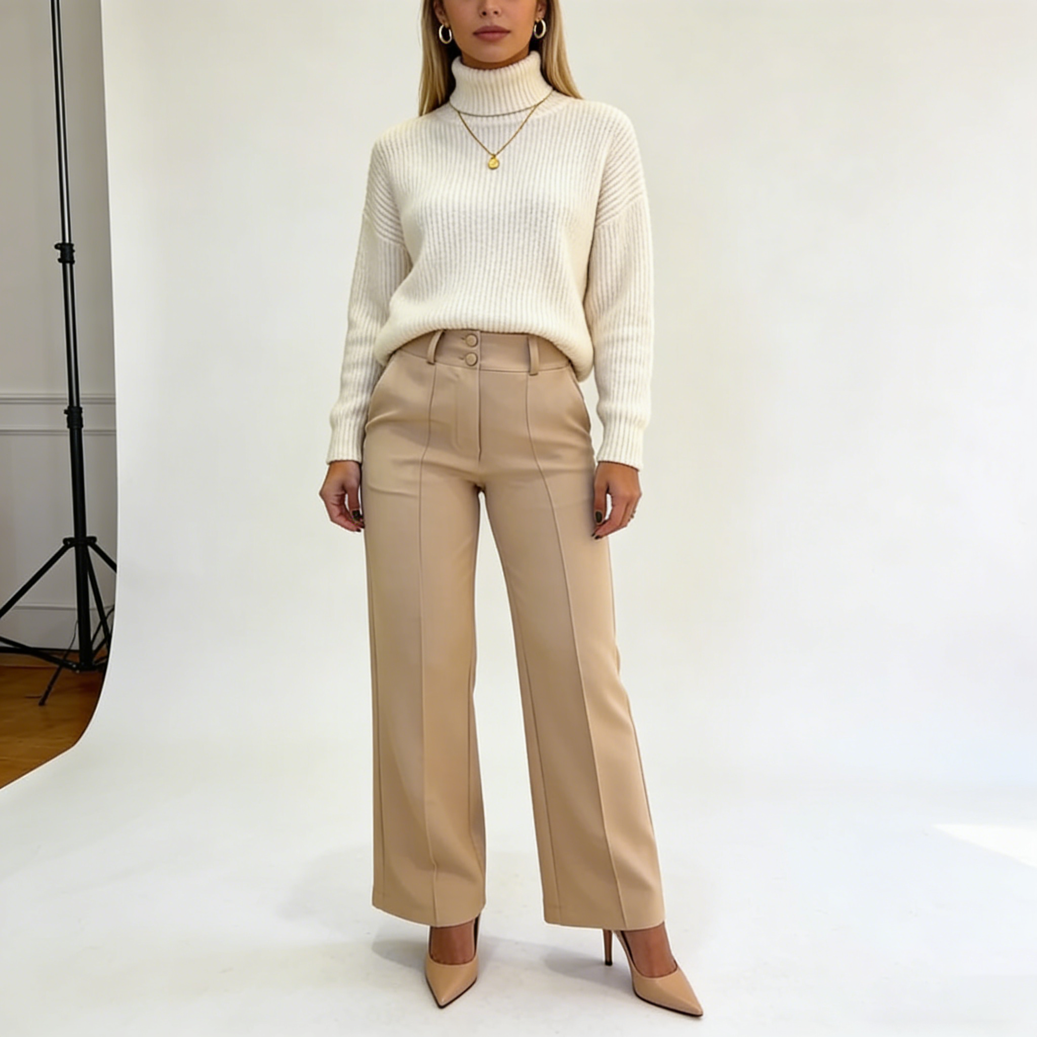 Explore the refined elegance of our latest 2026 vintage-inspired high-waisted wide-leg trousers!