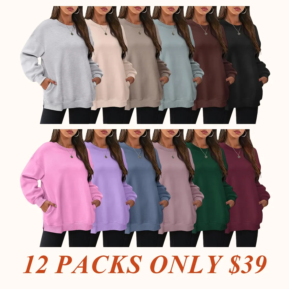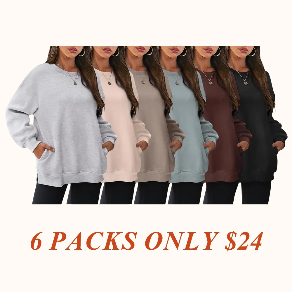 Womens Oversized Sweatshirts Crewneck Long Sleeve Tops Fleece Pullover Fall Fashion Clothes with Pocket